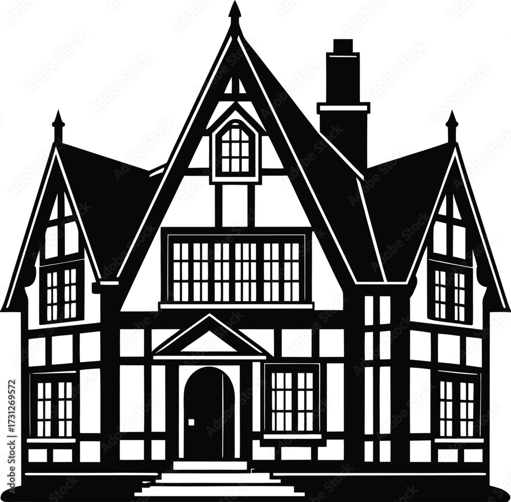 Samolepka Elegant tudor style house, featuring classic architectural elements and a timele