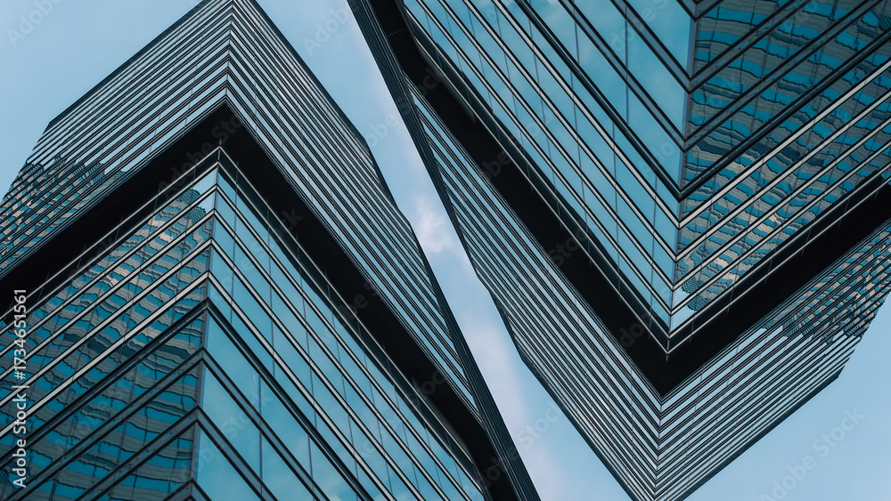 Samolepka mirrored windows of the facade of an office building