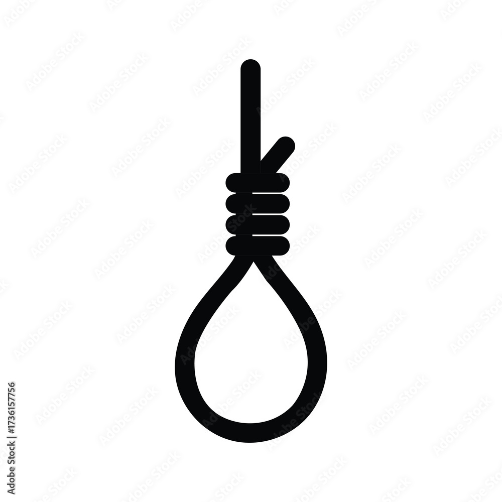 Samolepka silhouette of a hanging noose symbolizing despair on a plain white background