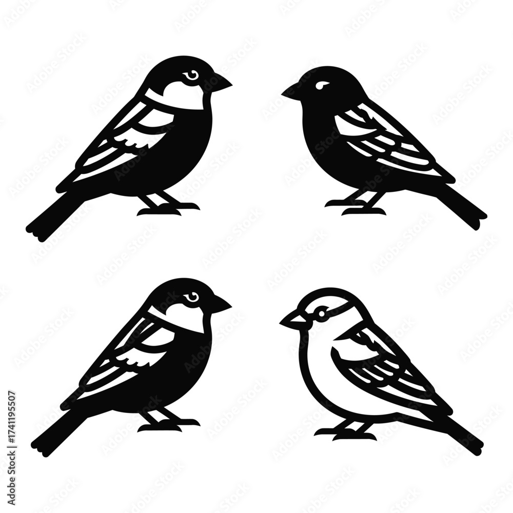 Samolepka Charming sparrows four ornithological silhouettes with detailed feather textures