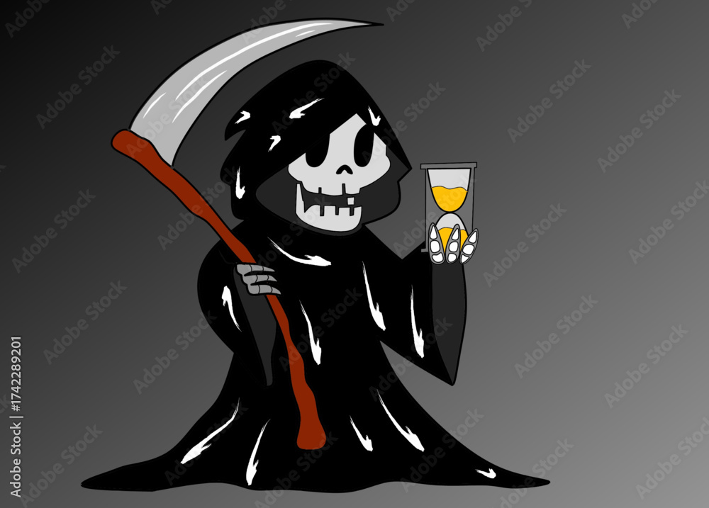 Samolepka A cartoon illustration of the Grim Reaper, the personification of death, standin