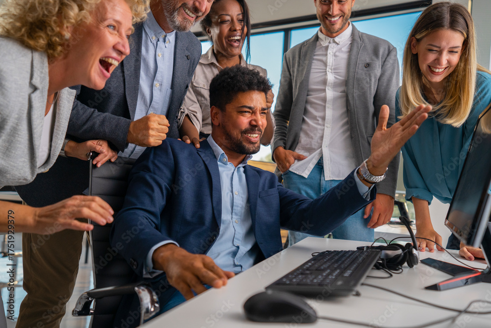 Samolepka Diverse business professionals feeling happy collaborating and celebrating a gre