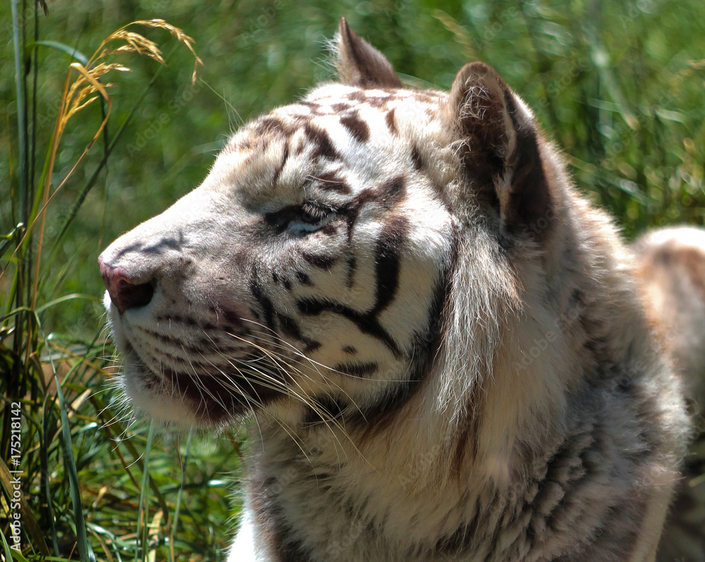 Samolepka Close up to Siberian tiger at zoo in Rome, blurred natural background