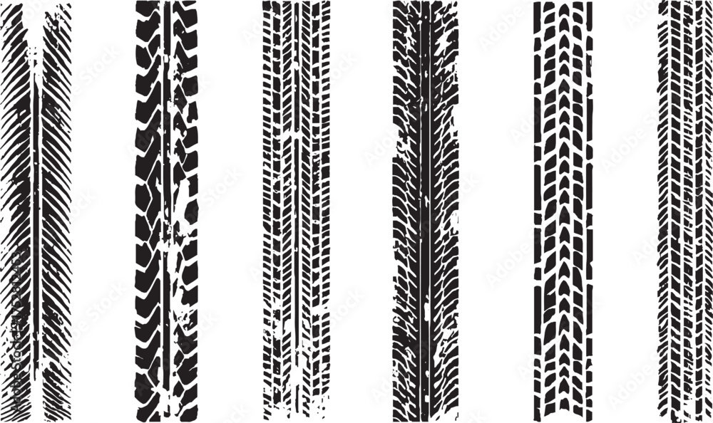 Samolepka Black tire track silhouette set with off road vehicle marks and rugged texture b