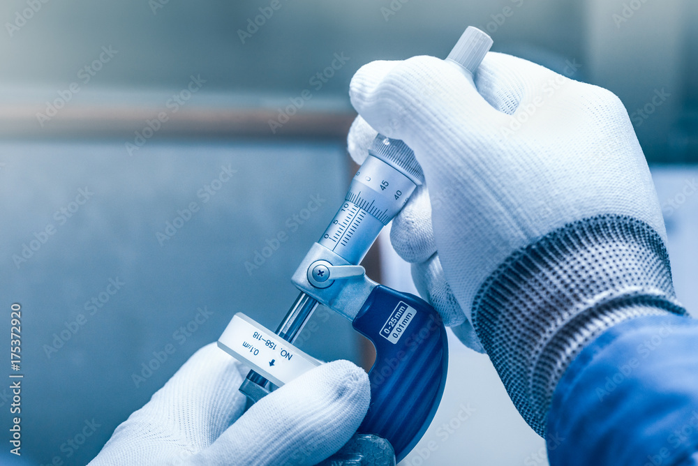 Samolepka Micrometer Calibration with gauge block in laboratory.