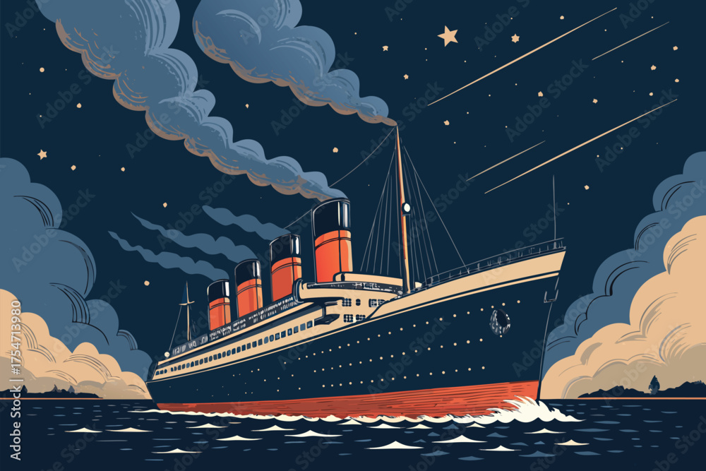 Samolepka A grand ocean liner sails through a starry night sky and clouds.
