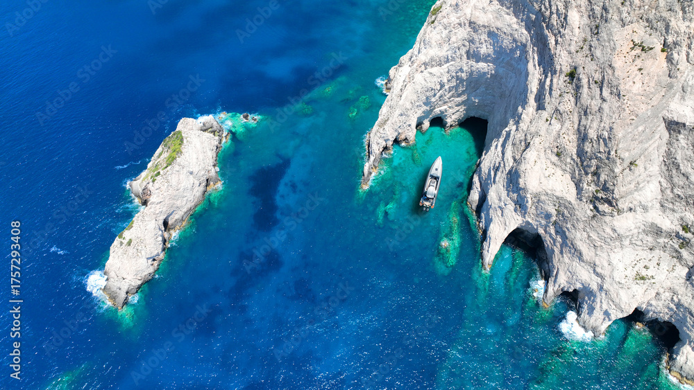 Samolepka Aerial drone top down photo with copy space of inflatable rib speed boat anchore