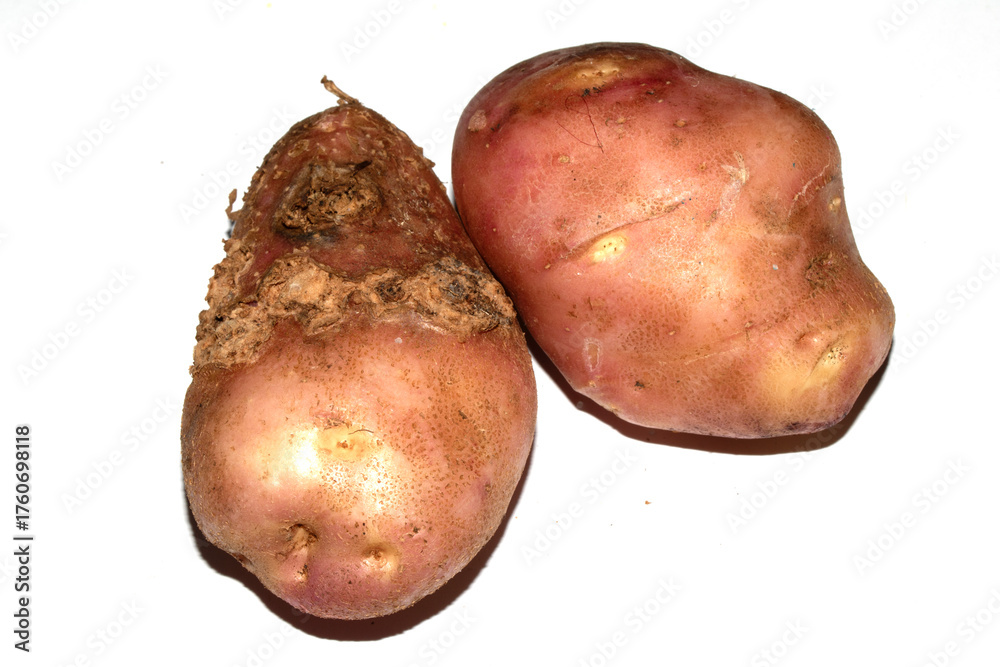 Samolepka Home grown potatoes with fungus scab on the skin, edable but wonky vegetables