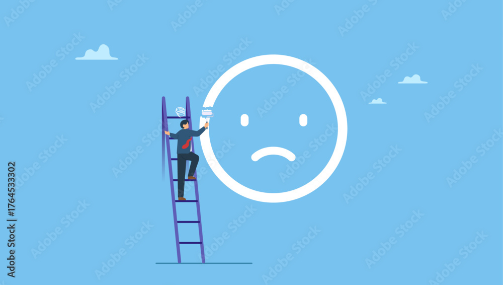 Samolepka Young man painting dissatisfied face on the wall mad anger emotion