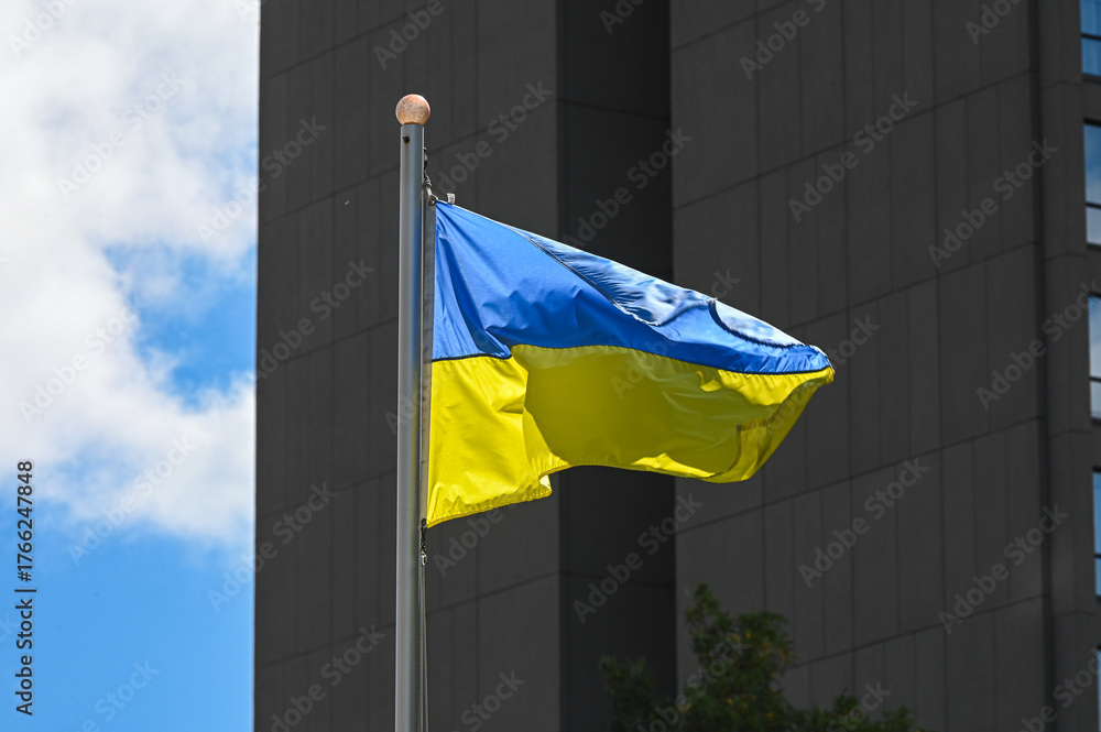 Samolepka National flag of ukraine flying