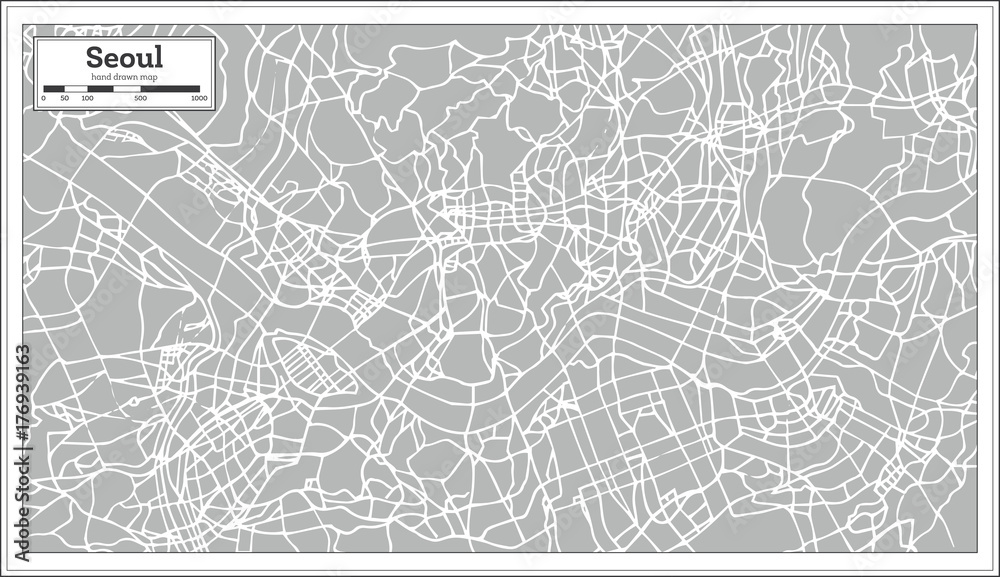 Samolepka Seoul Map in Retro Style. Hand Drawn.