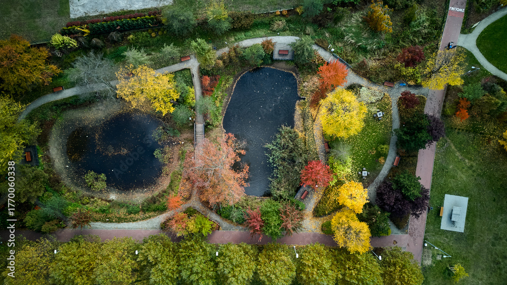 Samolepka nature mosaic view, landscape ecologist examines interconnected ponds and vibran