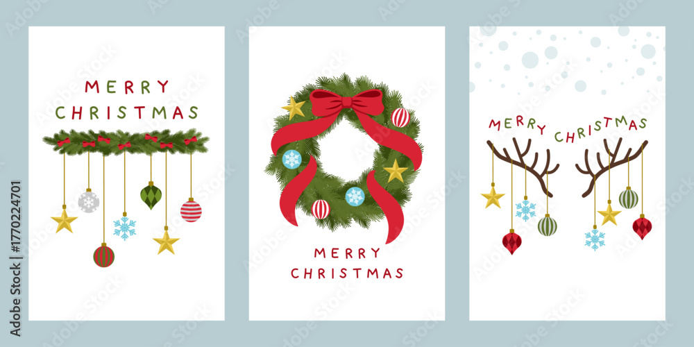 Samolepka Christmas banner layouts of pine leaves wreath, reindeer antlers and ornaments for artwork design of card, poster or background