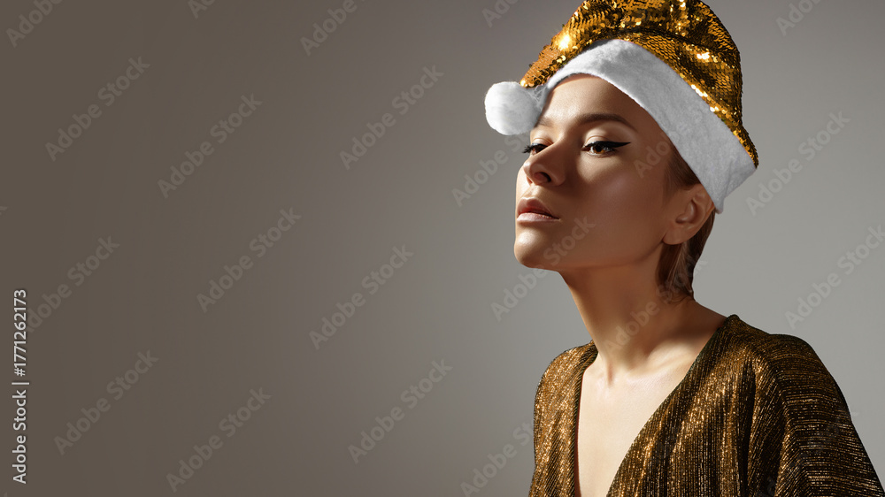 Samolepka Fashion woman in Christmas hat, golden Style with sparkly Clothes