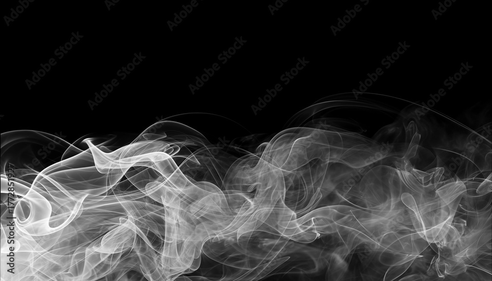 Samolepka Ethereal white smoke swirls gracefully against stark black background, creating