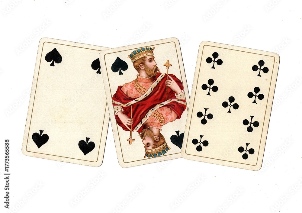 Samolepka A hand of vintage playing cards isolated on a white background.