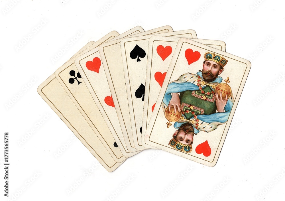 Samolepka A hand of vintage playing cards isolated on a white background.