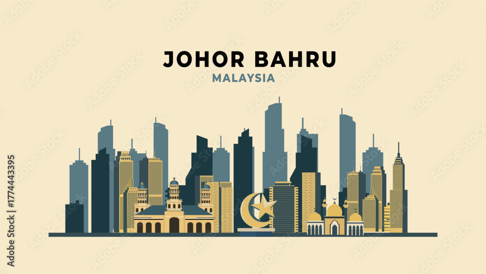 Samolepka Johor bahru city travel background flat illustration