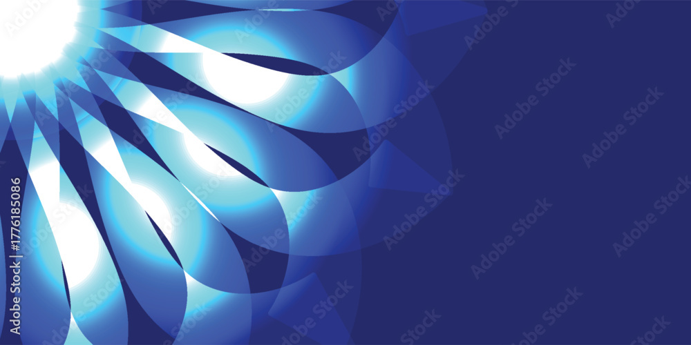 Samolepka An abstract graphic of a glowing blue sunburst with swirling, translucent petals against a deep blue backdrop