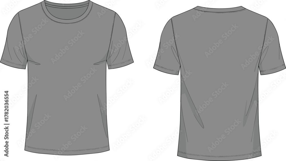 Samolepka Plain gray short sleeve t shirt front and back view, fashion flat sketch, appare