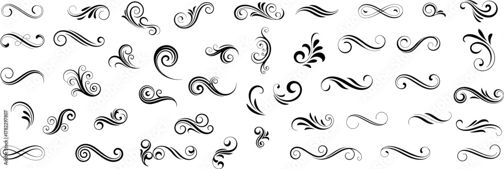 Samolepka Black swirly line curl set, harmonious blend of shapes and lines for greeting cards