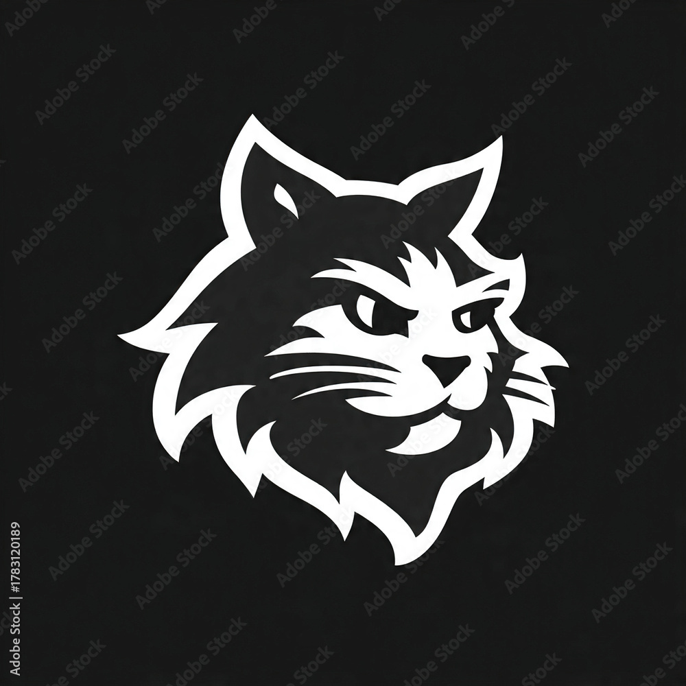 Samolepka Bold bobcat head logo design in crisp white against black, perfect for sports te