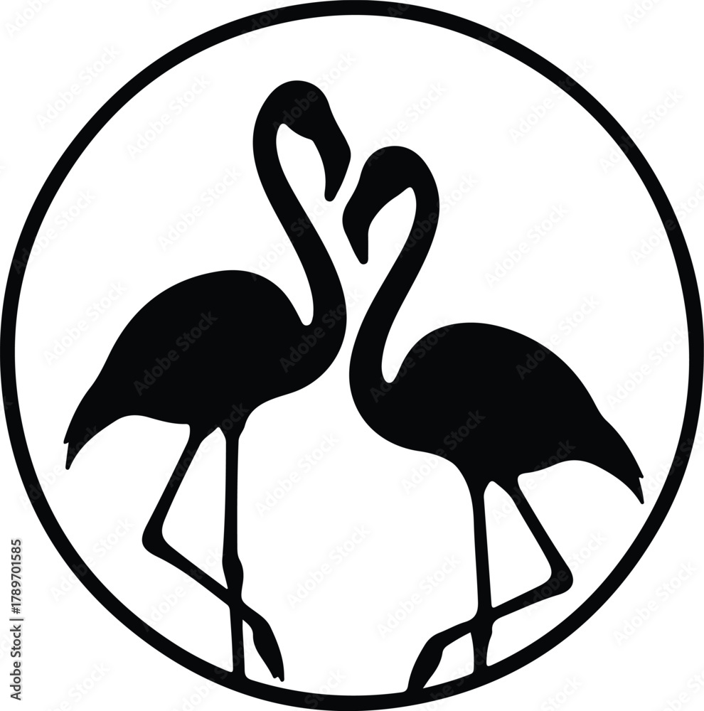 Samolepka Illustration Two flamingos forming heart in circular frame silhouette vector