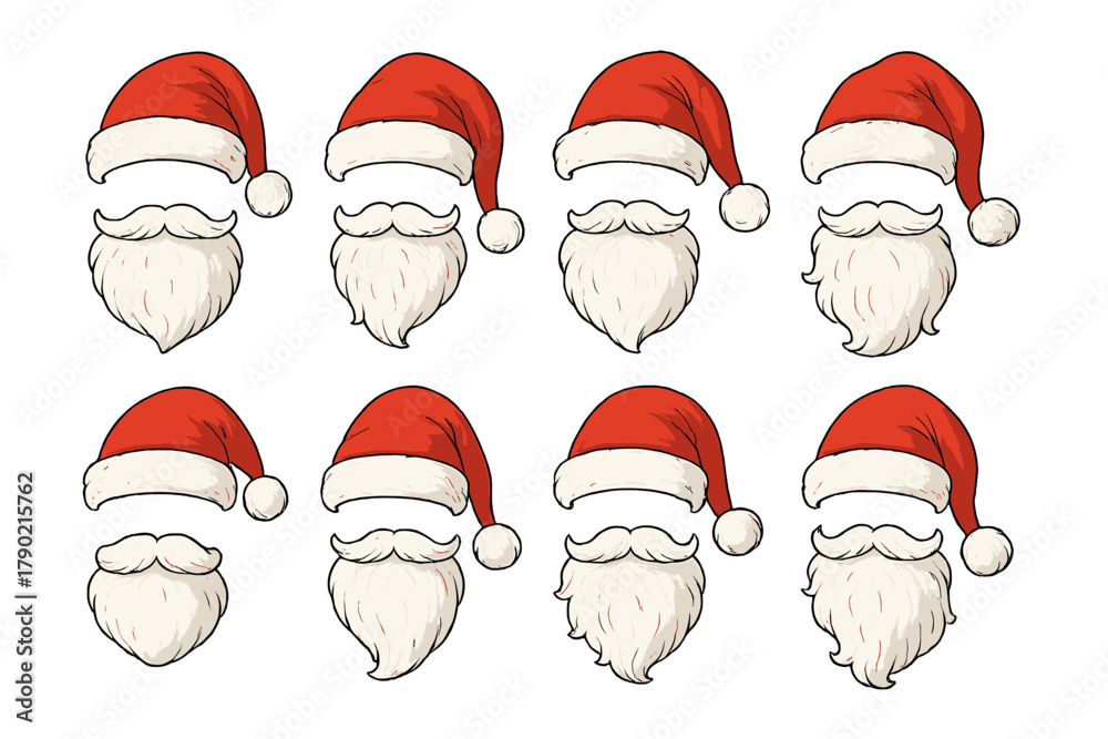 Samolepka Collection of Santa Claus hats and beards variations for Christmas holiday desig