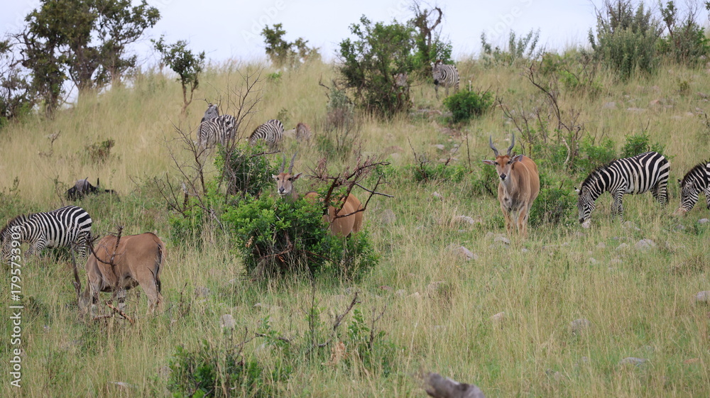 Samolepka A group of wild animals roaming the vast plains of the Maasai Mara, capturing the beauty and diversity of the African savanna