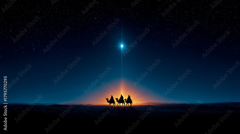 Samolepka Three wise men on camels are walking through the desert at night