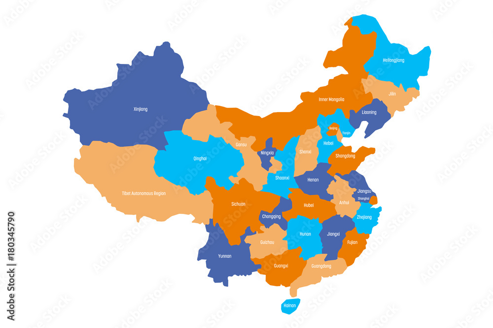 Samolepka Map of administrative provinces of China. Vector illustration.