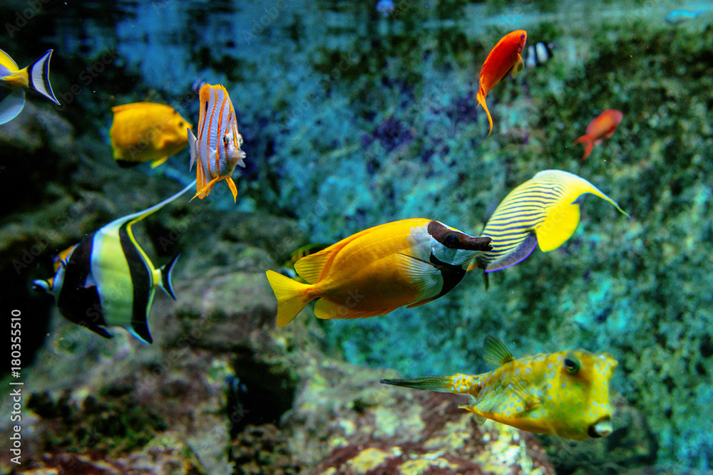 Samolepka Colorful tropical fishes and coralls underwater in the aquarium