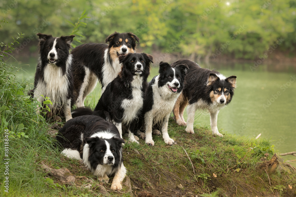 Samolepka A pack of obedient dogs - Border Collies in all ages from the young dog to the s