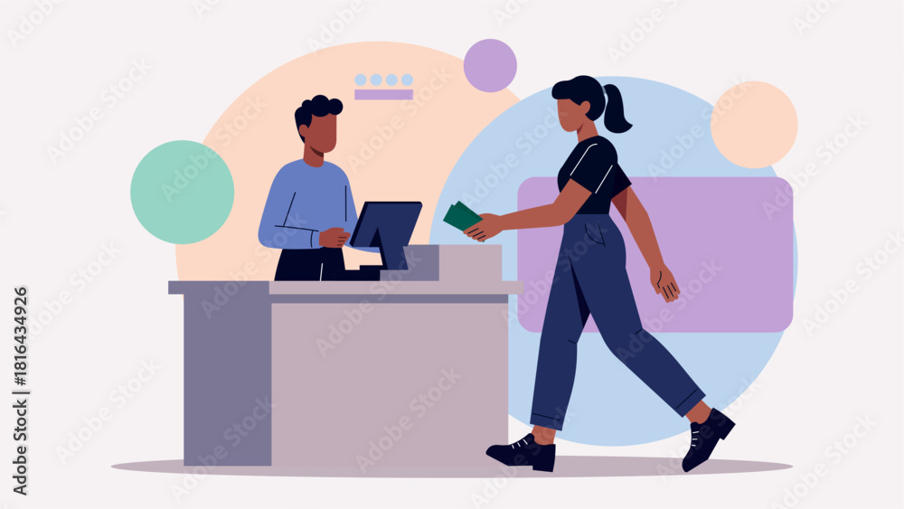 Samolepka Customer Makes Cash Payment at the Cashier – Retail Transaction Illustration