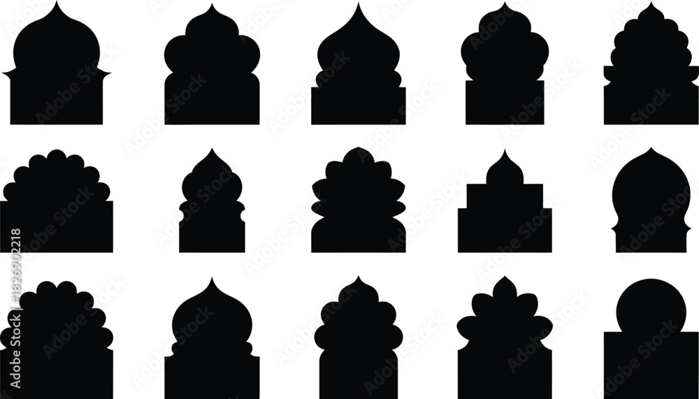 Samolepka Collection of black silhouette islamic arch shapes decorative architectural elem