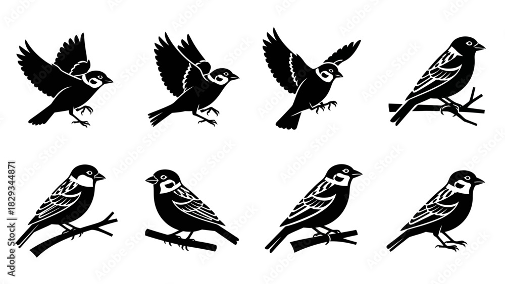 Samolepka Silhouette bird set featuring various poses isolated on white background illustr