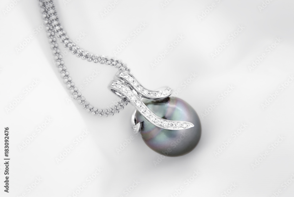 Samolepka White gold pendant with tahitian pearl and diamonds
