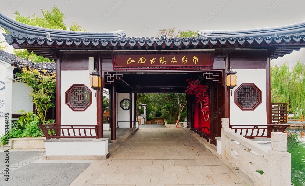 Samolepka Asia, China, Shanghai, Zhujiajiao, 09 November 2025, chinese temple entrance