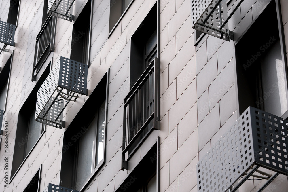 Samolepka Modern architecture showcases stylish balconies in urban setting