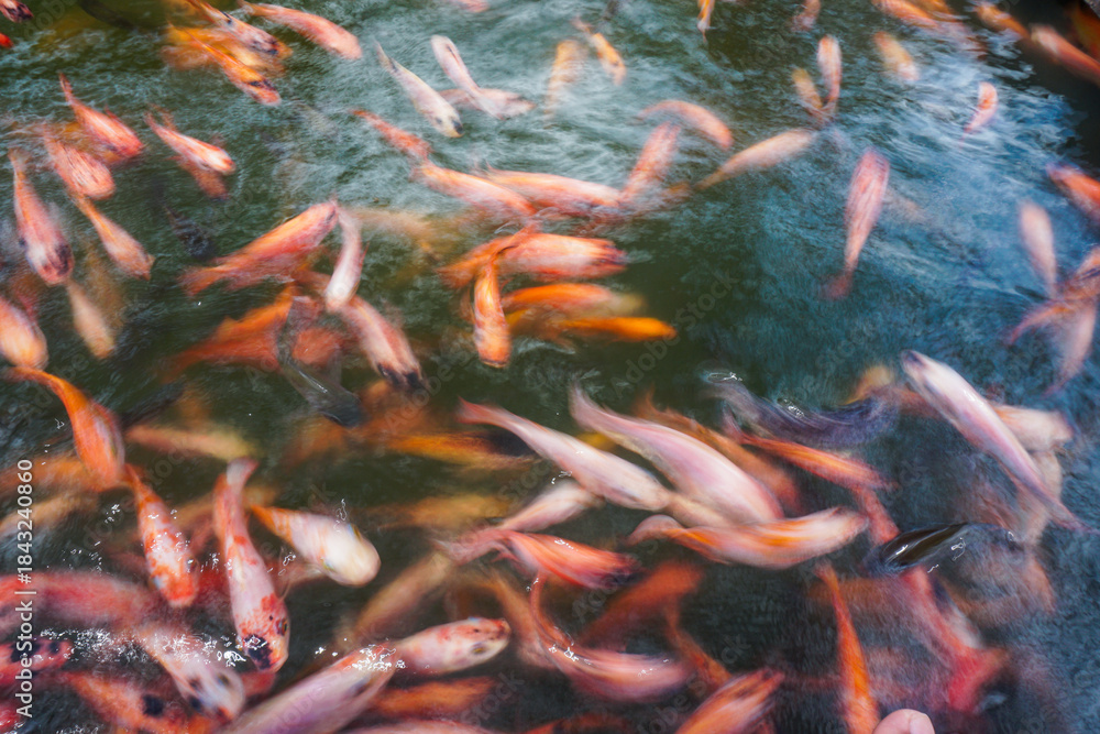 Samolepka A shoal of tilapia fish is moving here and there in a fish pond with a motion bl