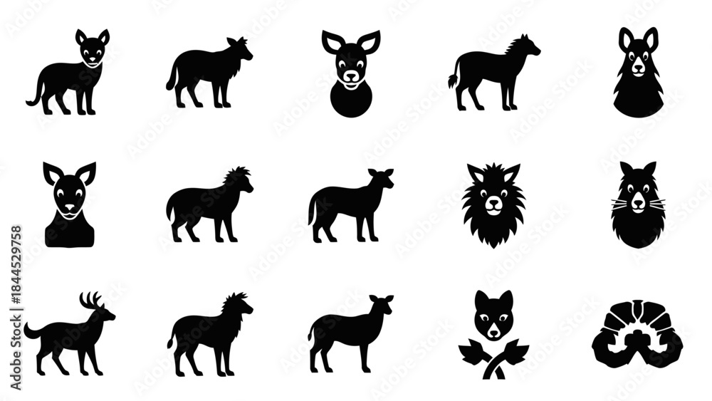 Samolepka Collection of stylized black animal silhouettes and icons on a white background