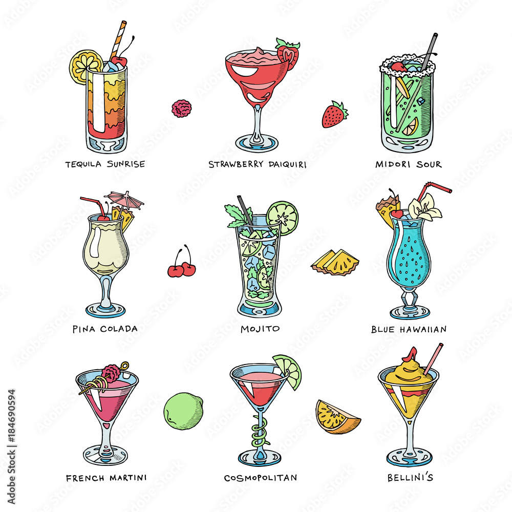 Samolepka Cocktail vector alcohol beverage drinking alcoholic tequila martini drink cockta