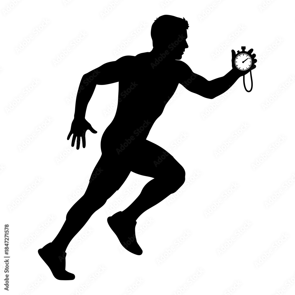 Samolepka Silhouette of athlete running while holding a stopwatch for timing races
