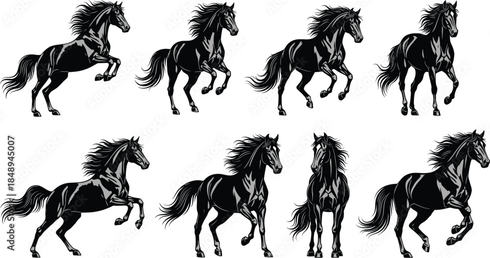 Samolepka Running horse illustration collection with dynamic galloping poses detailed flat