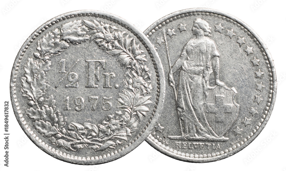 Samolepka Switzerland, half Franc (CHF), 1975 Year, copper-nickel circulation coin featuri