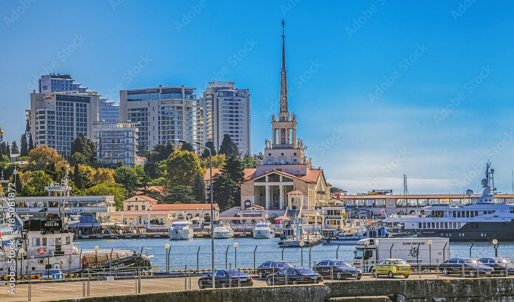 Samolepka SOCHI, RUSSIA - OCTOBER 8, 2015: Seaport on a Clear Day