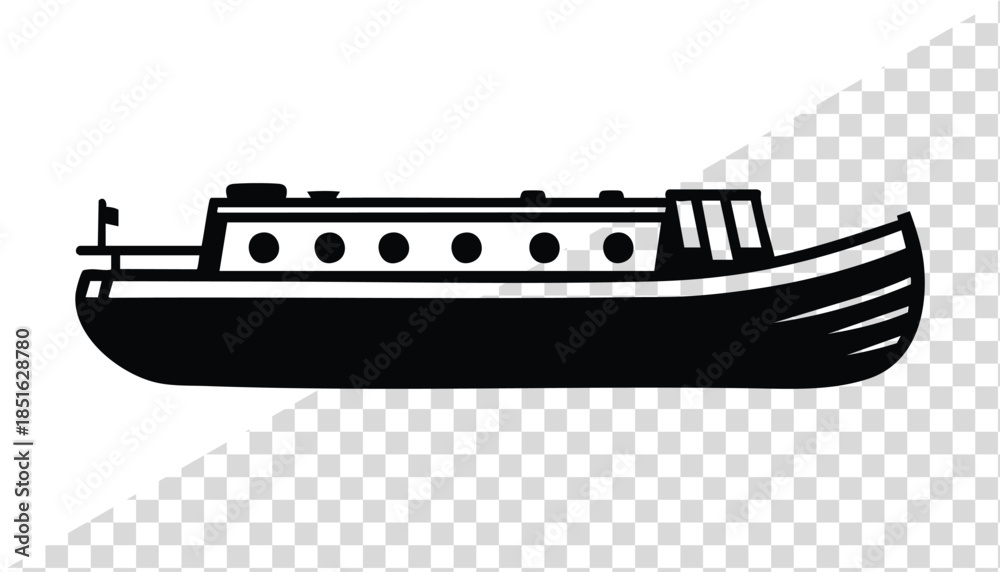 Samolepka Vintage narrow canal boat silhouette vector Illustration isolated on a white bac