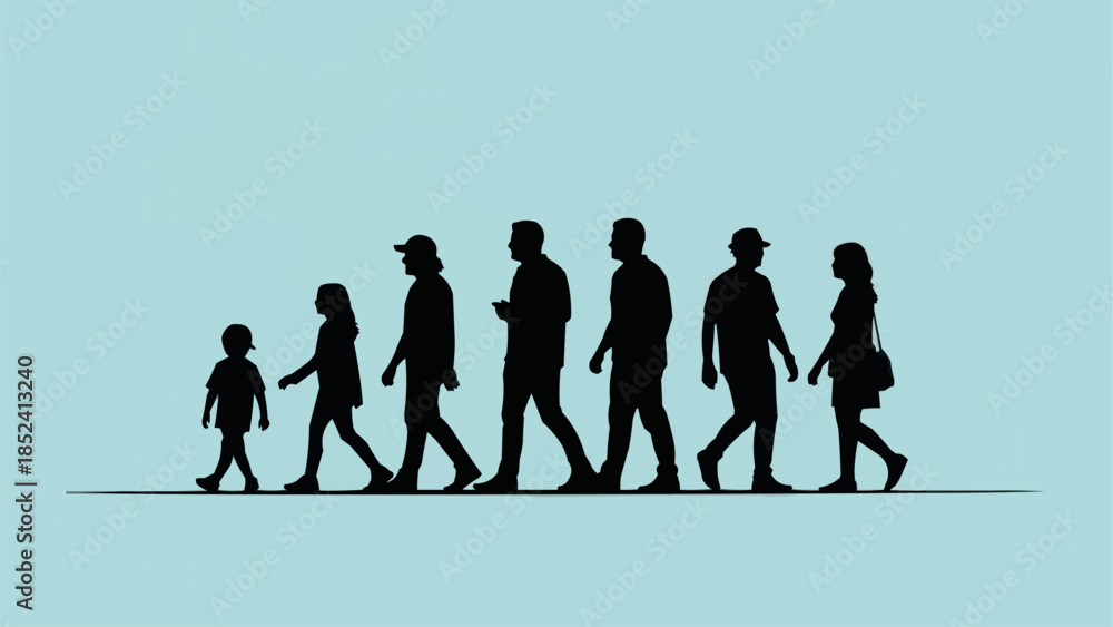Samolepka Silhouettes of People Walking in Line.