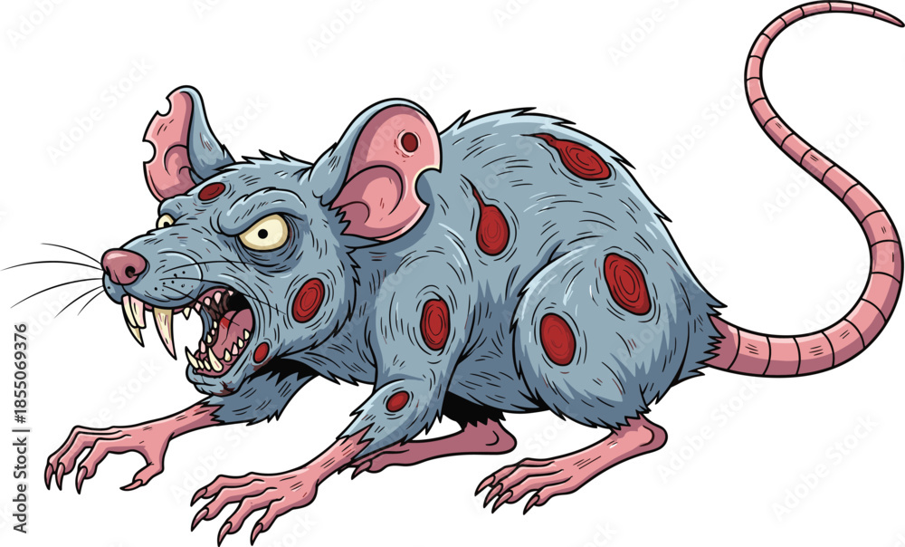Samolepka Mutant rat cartoon, diseased rodent, grotesque horror animal, infected creature,