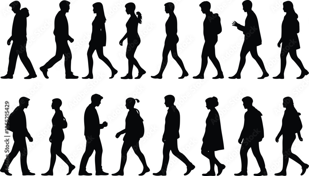 Samolepka Diverse urban walkers in silhouette Vector